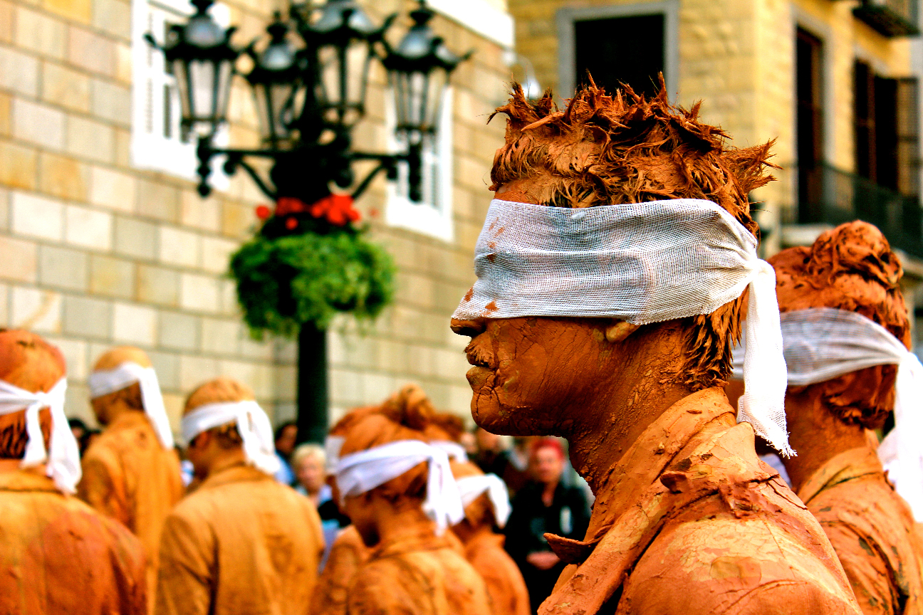El pasado 25 de abril el centro histórico de la ciudad de Barcelona fue el escenario de ‘Ciegos‘, una intervención urbana promovida por el Laboratorio de Prácticas Performativas de la Universidad de São Paulo y Desvio Coletivo. La performance, llevada a cabo por decenas de alumnos del Institut del Teatre dirigidos por los profesores Marcelo Denny, Marcos Bulhoes y la directora escénica Priscilla Toscano, recorrió las principales calles y espacios de la ciudad condal.