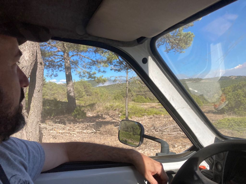 Nos preparamos con lo que pudimos y me subí a la mítica Citroën C15, “la cequin”, de Carlitos. De camino, clase improvisada para enfrentarse a un incendio: vigilar la dirección del viento, llevar un paño húmedo para poder respirar con el humo y golpear con la pala en las llamas para apagarlas si no hay agua.