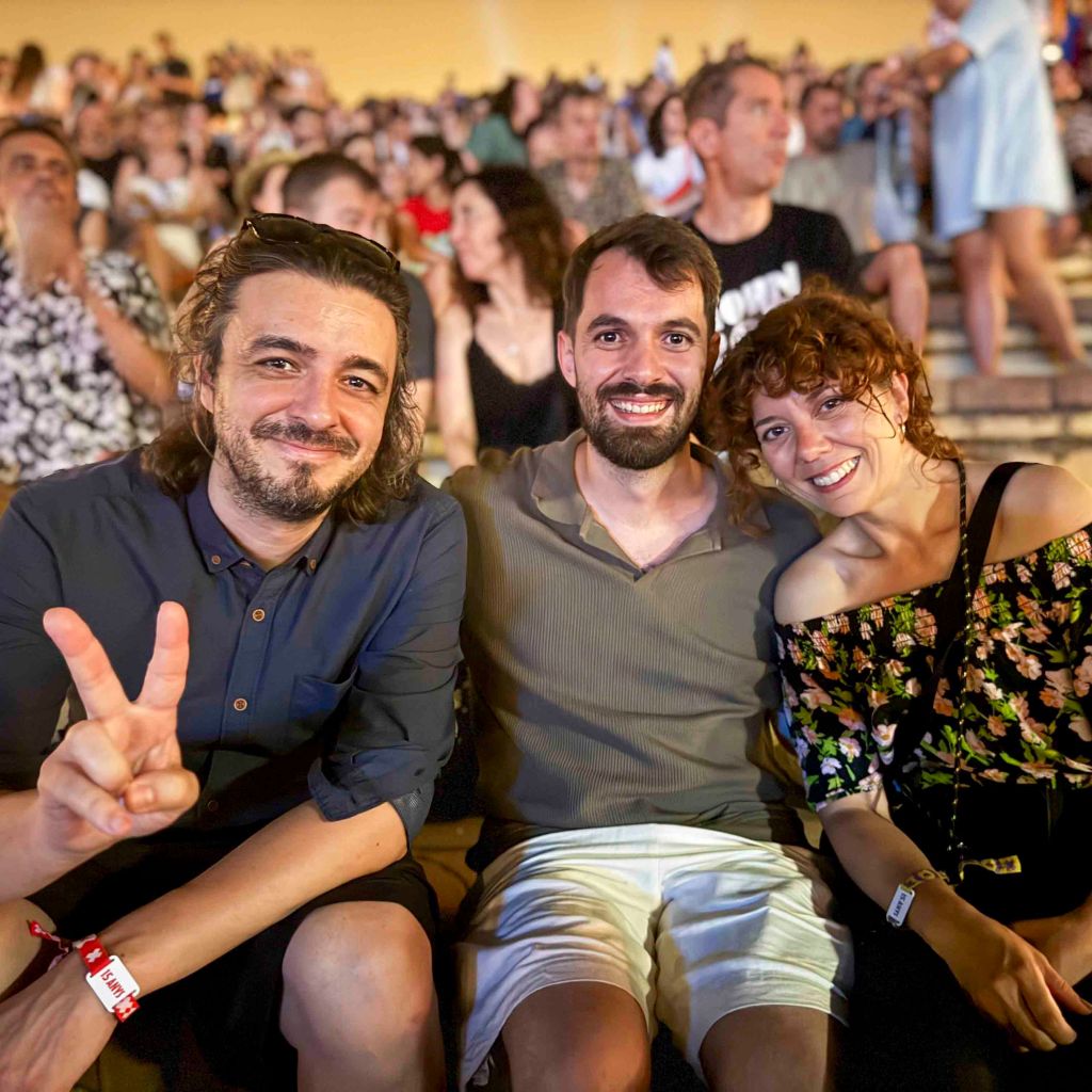 Mónica, Marc, y Rubén, este último justamente cumple los 40 al día siguiente, son profesores en una escuela de estudios audiovisuales. Rubén tiene más años y también más experiencia en el Cruïlla, esta es su tercera edición. Para el resto es su primera vez.