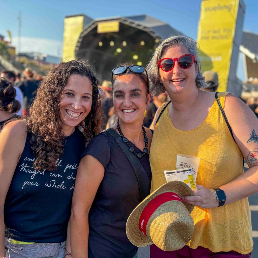 Judit, Vale y Natalia viven en el barrio de Horta de Barcelona y se han conocido en el colegio de sus hijos y en los parques del barrio. Es su segunda vez en el Cruïlla, un festival que les encanta. También han ido al Maleducats y al de la Porta Ferrada.