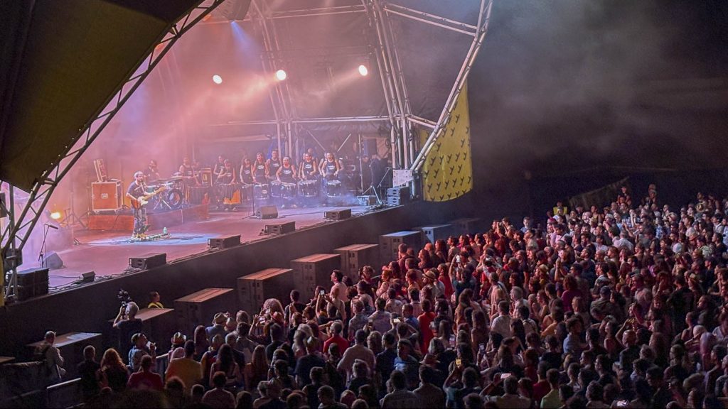 El que debía ser el día de celebraciones empieza convulso y con alarma meteorológica incluida. Después de varios avisos, finalmente el festival abre las puertas, más tarde y con algunas bajas en la escaleta, pero con un ejercicio de resiliencia y adaptación elogiable. La gente ha venido a pasárselo bien, llueva o truene.