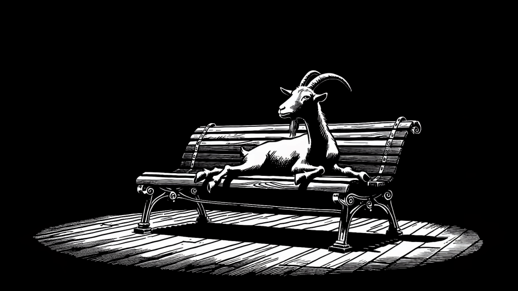 Cabra se acerca y se sienta en un banco aparecido de la nada sobre el escenario.